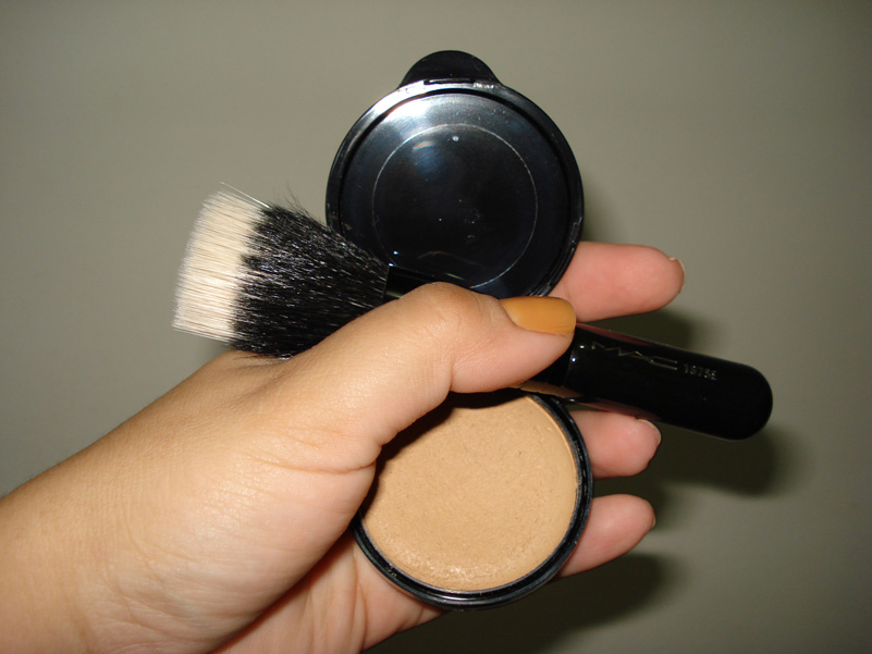 Mineralize Loose MAC cor Medium Plus passado com pincel de p?. Nem precisava, mas passei mesmo assim (serve qualquer tipo de p? solto que d? acabamento matte).