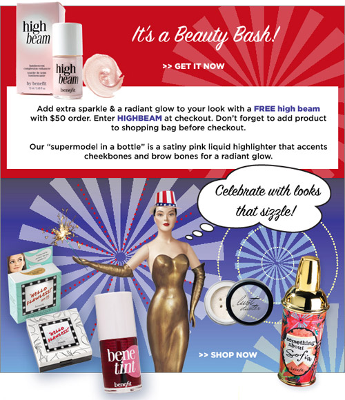 A Benefit está oferecendo um High Beam “de grátis” para todas as compras de $50 dólares pra cima. Para ganhar o mimo, é só adicioná-lo no carrinho de compras e utilizar o código HIGHBEAM durante o checkout.