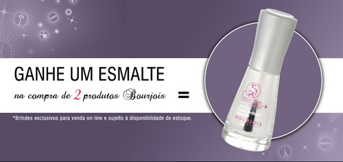 A loja da Bourjois do site Dufry Shopping está oferecendo um esmalte grátis na compra de dois produtos Bourjois.