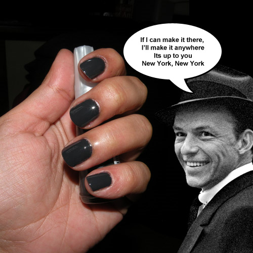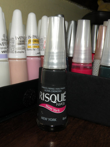 Pra não ficar com amão “pelada,” segunda-feira experimentei a cor New York da Risqué, que é um cinza asfalto liiiiiiiiiindo.