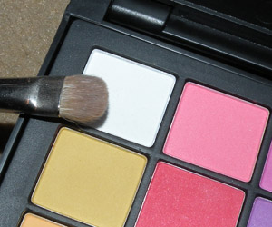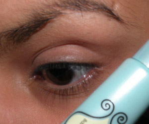 Depois, com o mesmo pincel, passei um pouco de sombra branca no canto interno do olho.