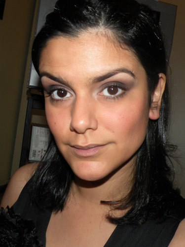Com um pincel fofinho (MAC 217) fiz movimentos de vai e vem para esfumar a sombra preta até que o tom virasse um chocolate bem escuro (vide 2a foto acima).