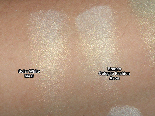 A cor mais usável da Coleção Fashion é o branco, que tem um brilho dourado super bonito e lembra móóóóóito a sombra Solar White da MAC.