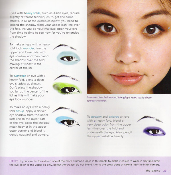 Durante o chat de ontem, pediram dicas pra olhos puxados. Como eu não tenho muita experiência nesse assunto, consultei meus livros para buscar algumas dicas.