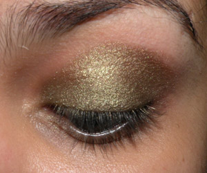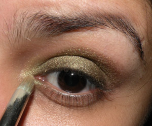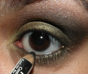 Com um pincel fininho (219 MAC), passei a sombra Gorgeous Gold (MAC) na parte de cima e na de baixo do cantinho interno do olho.