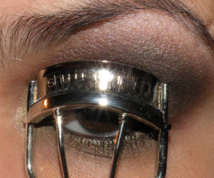 Delineei dentro do olho (na parte de cima e na de baixo) com lápis preto Noir & Blanc (Bourjois) e curvei os cílios com curvex (Shu Uemura).