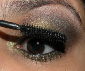 Passei algumas camadas de rímel (Lancôme Hypnôse), esperei secar e apliquei cílios postiços (faltou a foto, sorry!) com cola preta Duo.