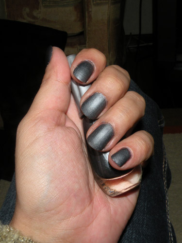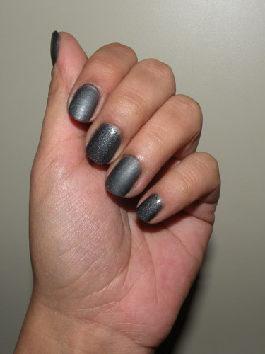 A cor do Congo é bem de grafite mesmo. A cintilância + o efeito fosco deixam a unha com cara  de lápis Faber-Castell.
