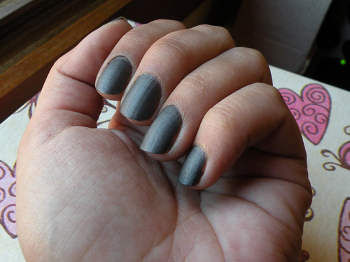 Sexta passada, mostrei toscamente duas cores novas da Panvel. Ontem, fiz a mão direitinho (na medida do possível) com o grafite cintilante de acabamento fosco da coleção África.