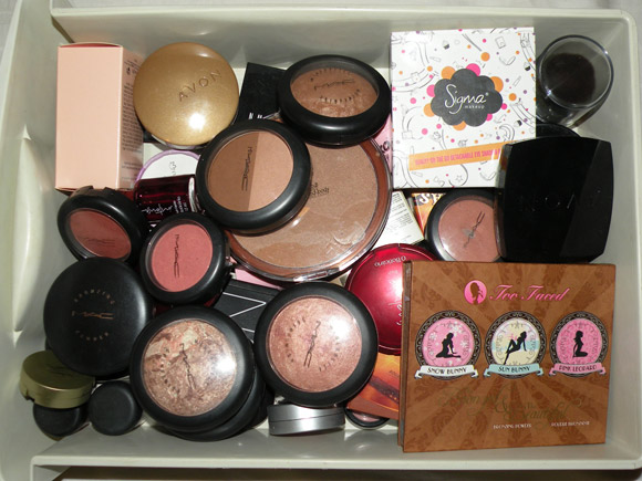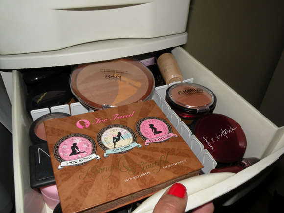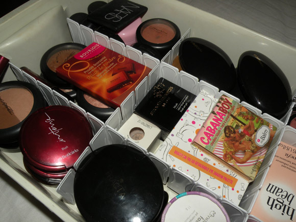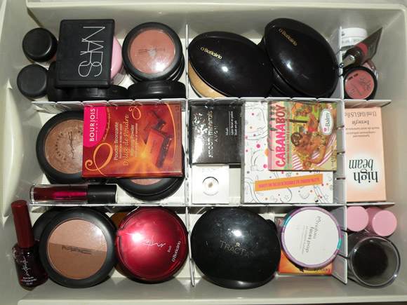 Ontem a noite, resolvi dar uma organizada nos blushes. Estava de saco cheio de acabar usando sempre os mesmos dois que ficam no início da gaveta, então desenterrei o organizador furreco para tentar dar um jeito na bagunça.