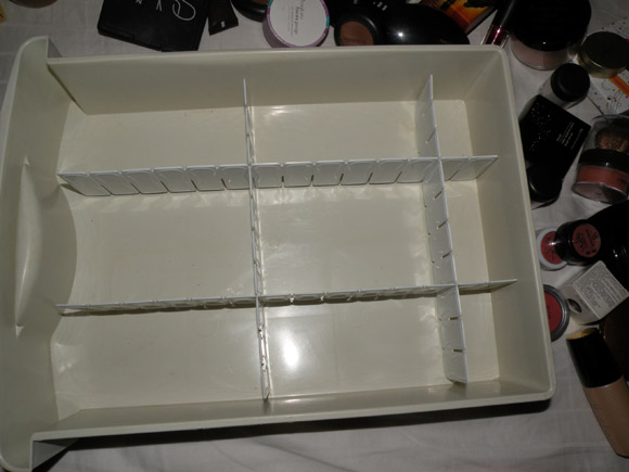 O chato é que se você não encher tudo com maquiagem (ou meias ou calcinhas ou o que você estiver organizando), as divisórias ficam bambas, já que elas não tem base e não ficam firmes ou justinhas na gaveta.