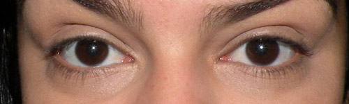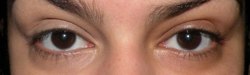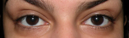 Um olho com corretivo e o outro sem