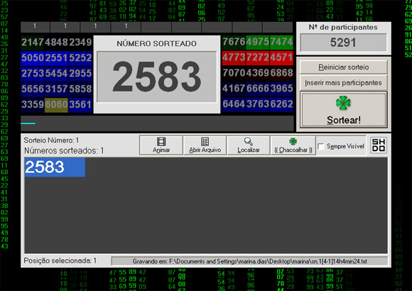 Utilizei o programa “Sorteio Virtual – Mais!” para escolher de forma aleatória o número vencedor.