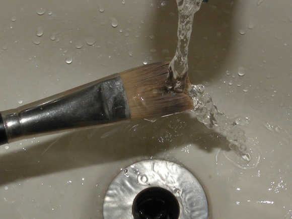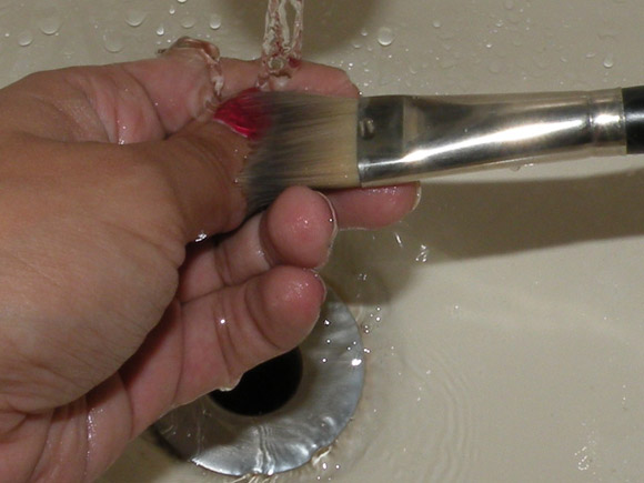 Enxágue o pincel até que a água saia limpinha/transparente.