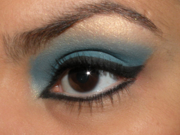 O make não está igualzinho ao de Liz no filme, porque eu queria algo que desse pra usar na vida real e sei lá, sombra azul até a sobrancelha é meio complicado, não? Tem que ter muita personalidade pra sair no carão.