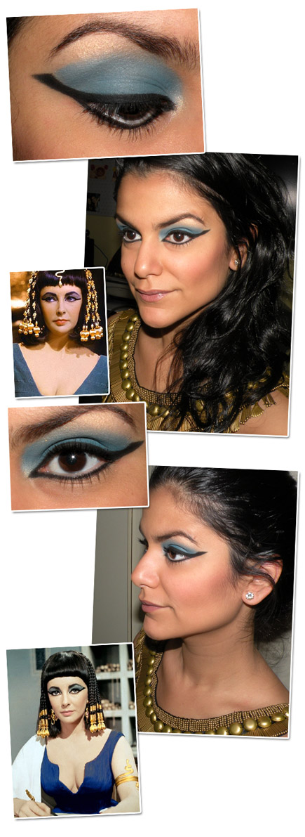 Em homenagem à diva do cinema (e santa padroeira de todas as moças que querem casar móóóóito), fiz um make inspirado no look Cleópatra.