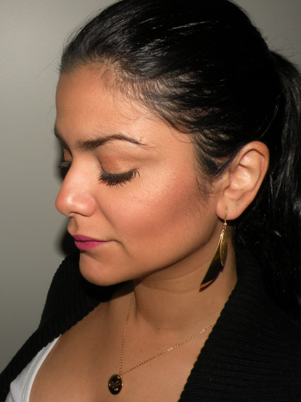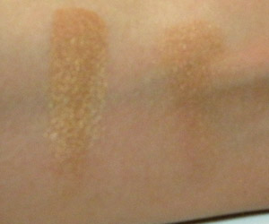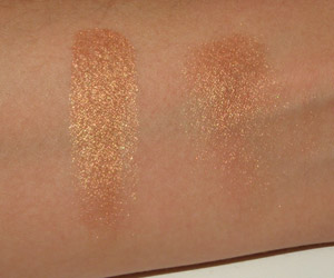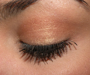 As minhas descrições de cor nunca são boas, mas vá lá… pra mim ela é uma sombra de fundo bronze com brilho dourado.