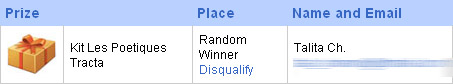 Resultado do Sorteio do Kit Les Poetiques Tracta