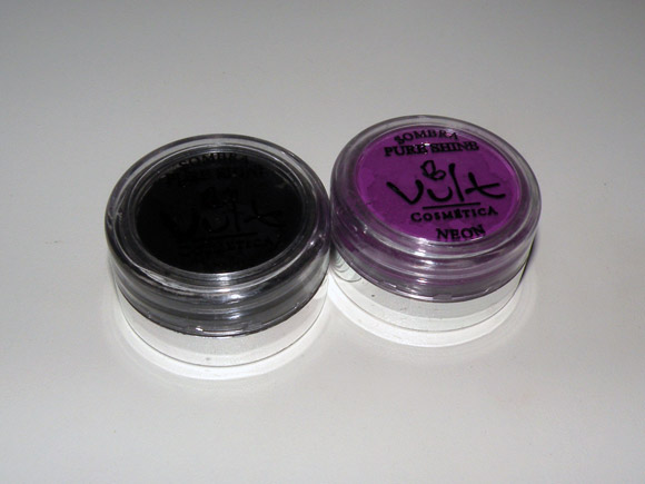 Essa semana eu falei das sombras Pure Shine com brilho, mas a linha também tem sombras Neon. Todas as cores desse tipo brilham na luz negra, exceto pelos dois tons que eu tenho.