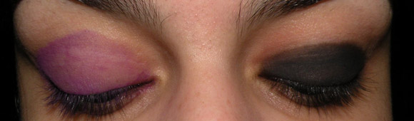 A sombra preta parece esfarelenta e muito seca, mas a aplicação/aderência é boa e a pigmentação é ótima.