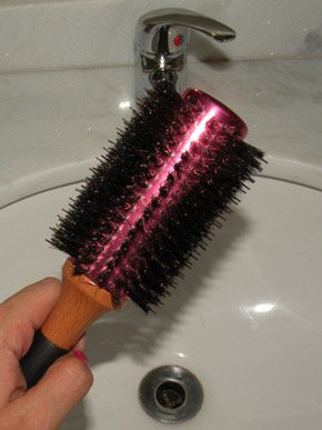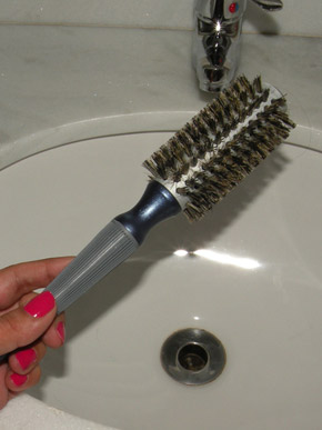 A escova pequena é importante, porque enrola a meia dúzia de centímetros que tem os fios da franja.