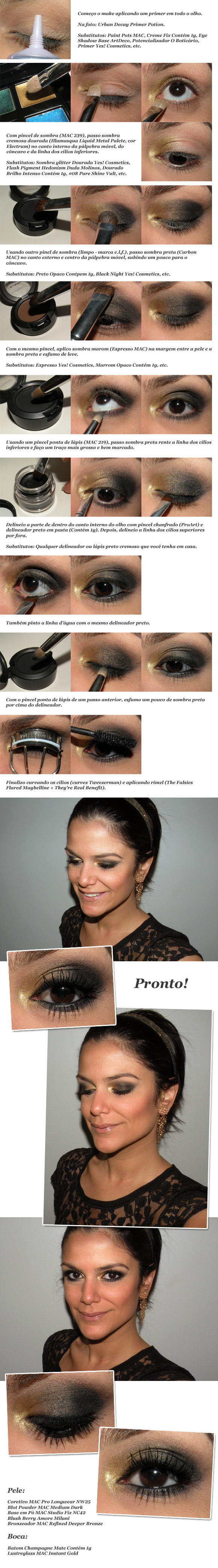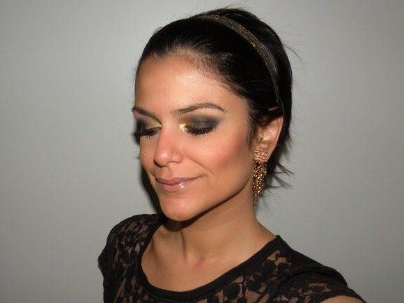 Eu fique levemente obcecada com o dourado lindo da imagem de divulgação de uma coleção nova da Illamasqua e como eu tenho a mesma sombra (pelo menos eu acho que é a mesma), resolvi copiar, só que pegando mais leve no preto, já que na imagem original, o esfumado da parte de baixo é mucho grosso e né…
