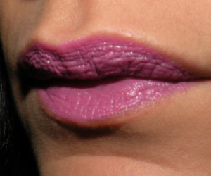 O tom do rosa é mais escurinho, o que ajuda muito, porque batom clarinho com fundo lilás me deixa com cara de doente.