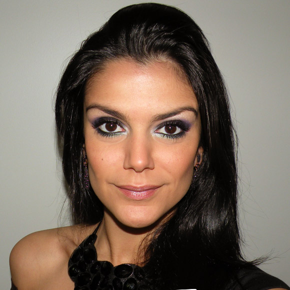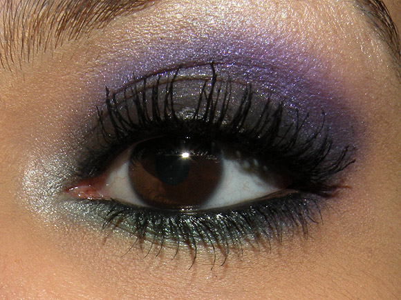 Tirei do ócio minhas palettes da MAC e fiz o olho com misturinha de sombra roxa com verde água e… deu certo.