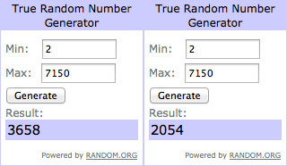 Os números sorteados pelo random.org foram 3658 e 2054.