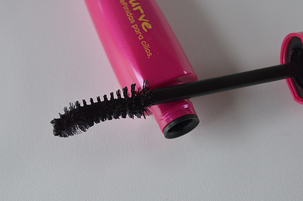 A escova aplicadora é grandona, volumosa e curvada.