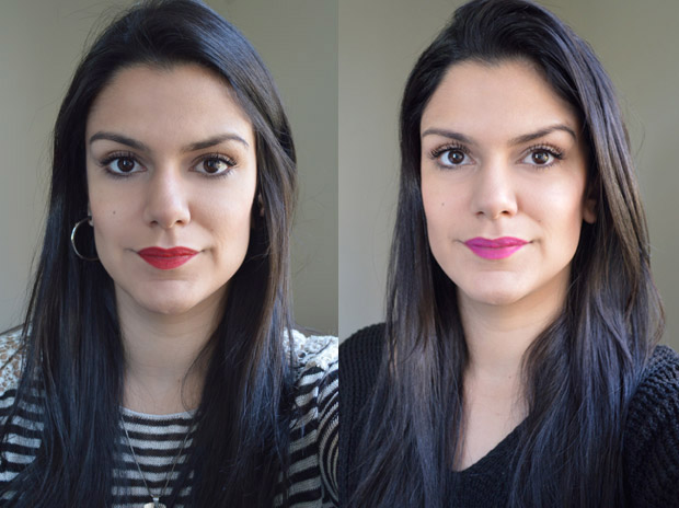 Ao invés de remover o batom rosa para pintar a boca com o vermelho, acabei passando por cima mesmo.