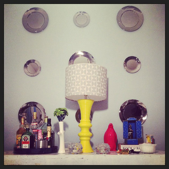 A casa dele é toda bonitinha e um dos meus cantos preferidos é o aparador das biritas (por motivos óbvios) que fica na mesma parede onde a minha cunhada fez uma “galeria” com pratos prateados.