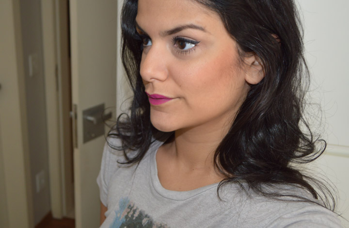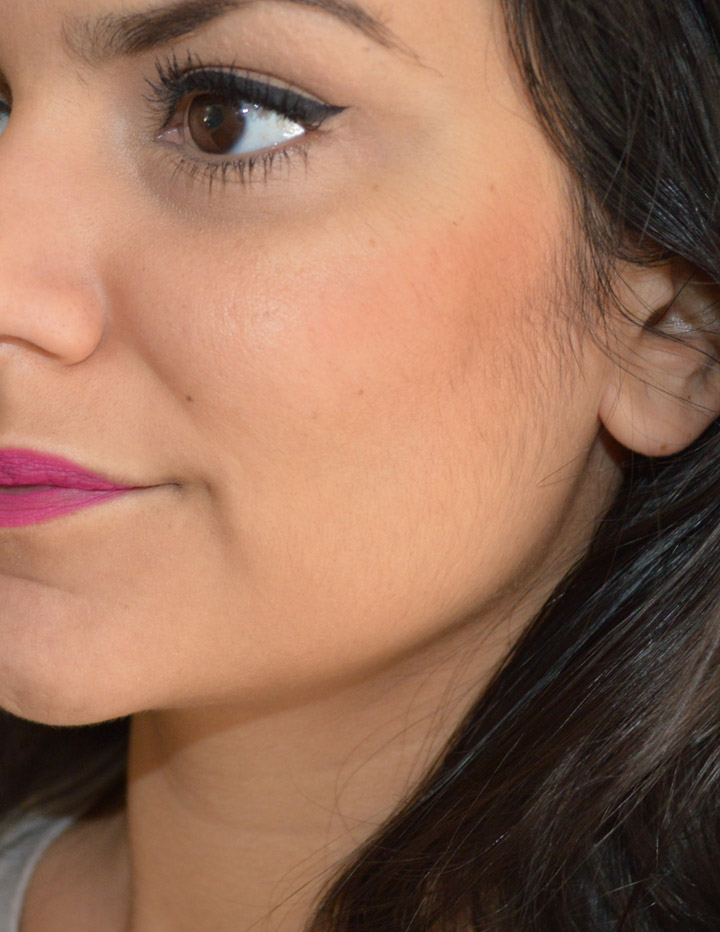 Para fazer as amostrinhas na minha bochecha, tive de esfumar muito pouco e aplicar duas camadas para que a cor ficasse bem aparente nas fotos.