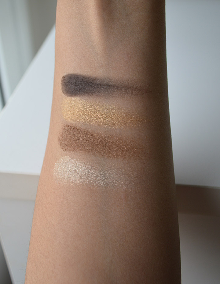 A pigmentação das sombras sem primer é muito bacana (vide amostrinhas abaixo) e a fixação vai depender da pálpebra de quem usa.