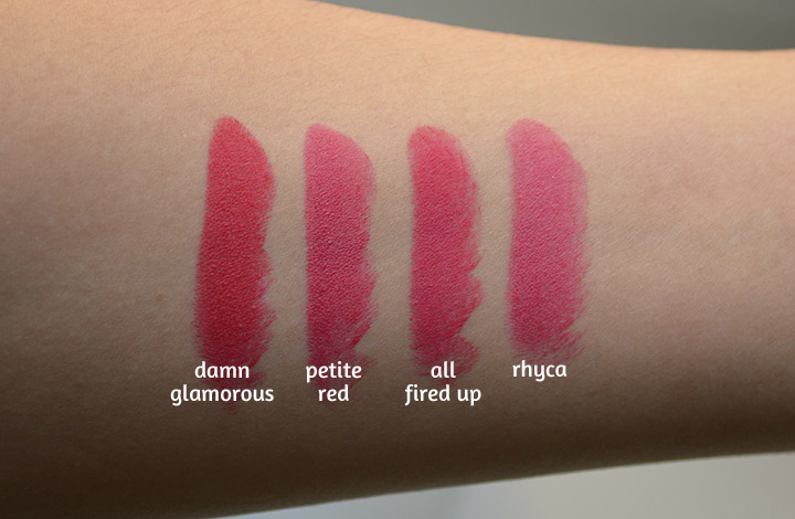 O Rhyca é mais cremoso que o Petite Red, enquanto o All Fired Up é mais opaco.