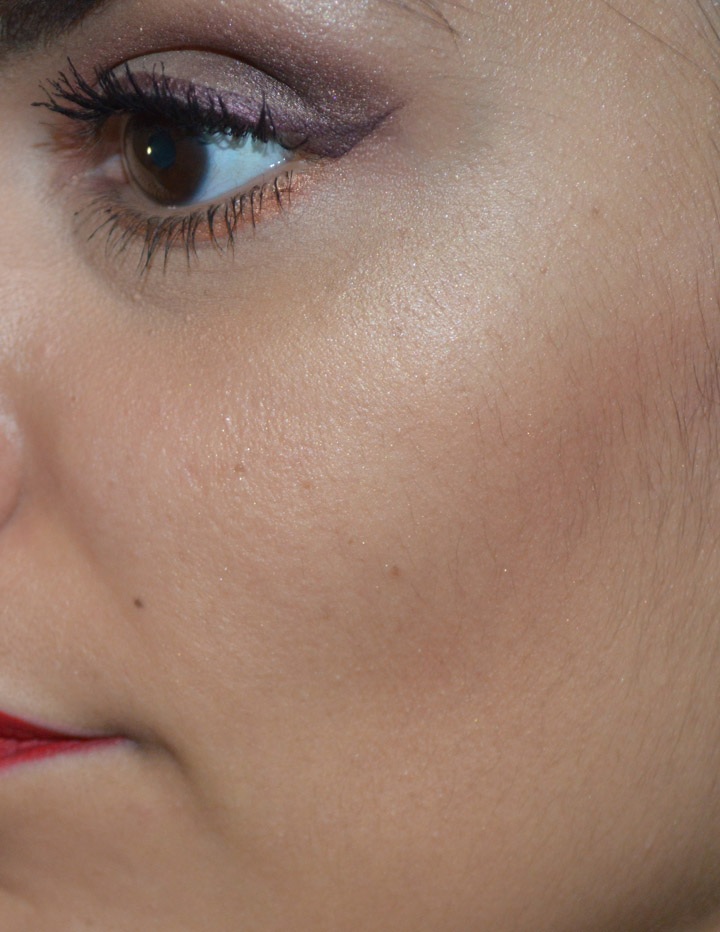 Voc? esfuma na pele e os brilhos se espalham de forma homog?nea. N?o se nota pontos cintilantes separados ou de tamanhos diferentes, o que d? aspecto de vi?o e n?o de brilho ? maquiagem.