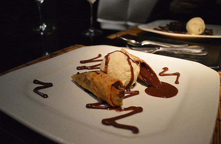 E nessa segunda, eu também pedi sobremesa. Não lembro o nome, mas é um doce com massinha crocante e recheio de chocolate, acompanhado por uma bola de sorvete.