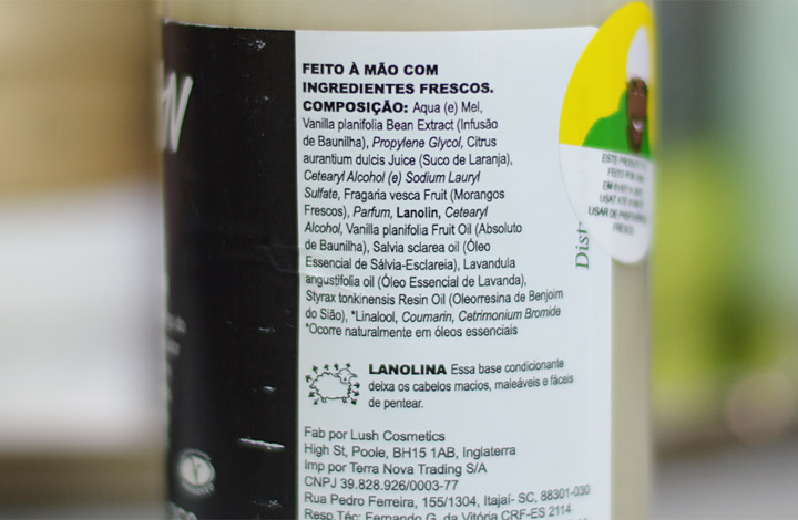 Sua lista de ingredientes também conta com a acidez do suco da laranja (que ajuda a alinhar as cutículas capilares, potencializando o brilho) e com a ação suavizante e relaxante da sálvia esclaréia e da lavanda.