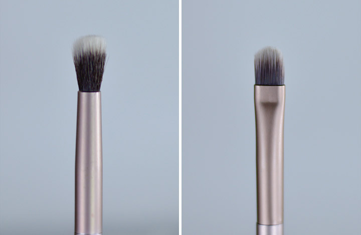 As sombras são esfarelentas e como ele é bem “liso” graças às cerdas sintéticas, não faz um bom trabalho ao depositar a cor.