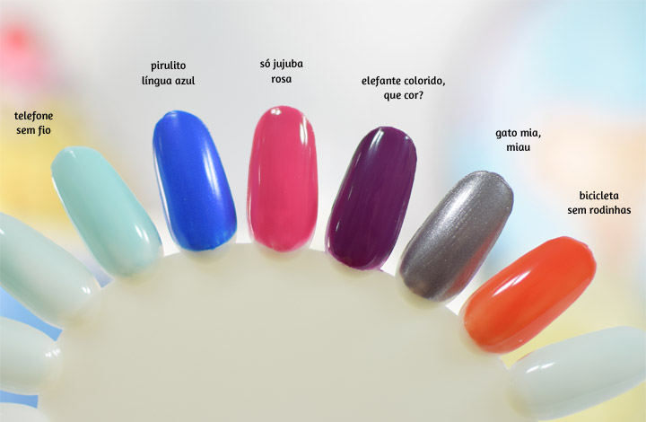 A inspiração para batizar os seis tons de esmalte de “Eu era feliz e sabia!” é a minha época preferida da vida, a infância: