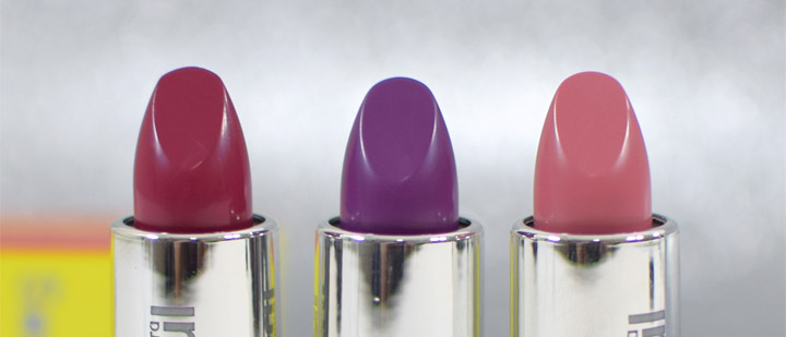 Batons Eudora Soul Kiss Me Efeito Matte (Rosa Tentação e Roxo Desejo) e Balm Labial (Nascer do Sol)