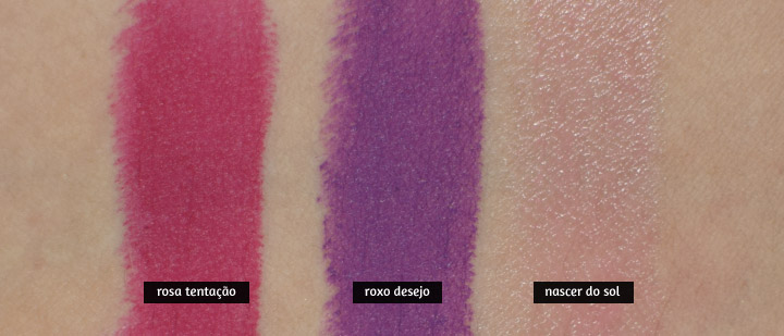 Achei a cobertura boa e gostei muito dos dois tons, em especial do Roxo Desejo (que aparece nesse vídeo aqui).