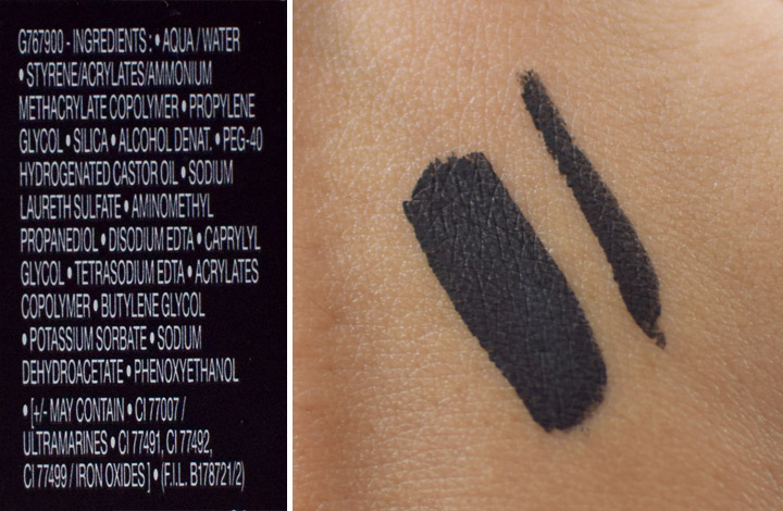 Denso, opaco, e intensamente mate, o acabamento na pele é de rara sofisticação graças a uma seleção de pigmentos preciosos. A fórmula rica em água desliza suavemente na pele e seca rapidamente. O traço não se mexe, nem sob o efeito da umidade, nem sob o efeito da oleosidade da pele. Um polímero de látex forma uma película que fixa a matéria e a protege, ao longo do dia inteiro. Uma fórmula ideal em todos os aspectos, com uma qualidade de aplicação e uma fixação excepcional. Incrivelmente fácil de ser retirada, Grandiôse Liner sai simplesmente com água quente.