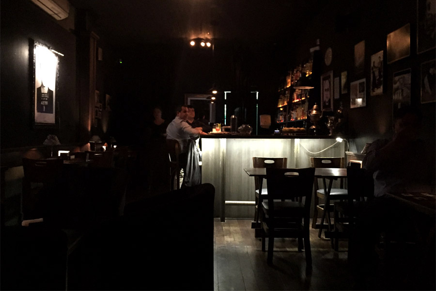 Seguindo a linha desse período, a fachada do Capone é discreta com apenas uma porta e um pequeno luminoso em forma de taça de martini.