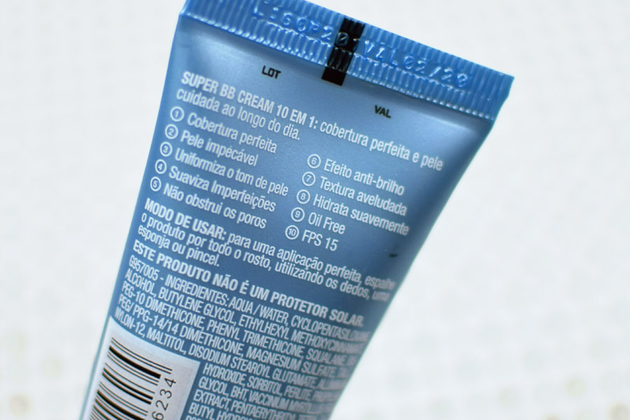 O que posso contar do curto tempo em que estive maquiada com o Super BB Cream 10 em 1 é que a cobertura dele é muito boa para um bb cream e que seu acabamento é sequinho sem forçar a amizade.