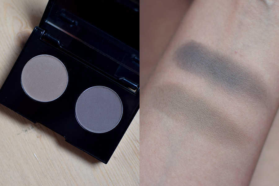 O Duo Brow Sabrina Sato tem duas cores de pó, ambas de fundo mais neutro e acinzentado, que podem ser usadas sozinhas ou em conjunto para preencher as sobrancelhas.