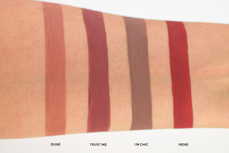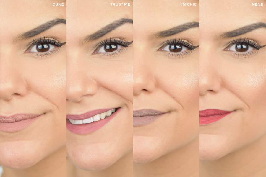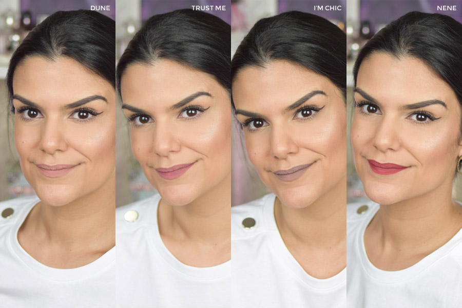 Forever Matte tem dez cores e eu pude experimentar quatro delas: Dune, Trust Me, I’m Chic e Nene.