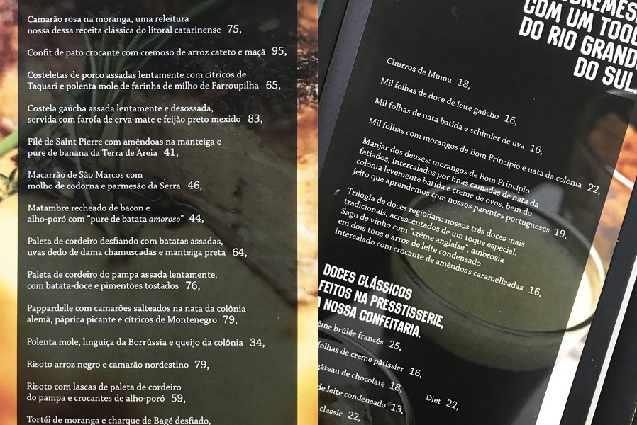 O restaurante oferece pratos típicos do Rio Grande do Sul com uma pegada mais refinada, vide a polenta com linguiça da imagem acima.